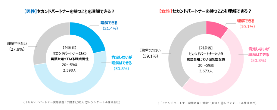 ただし、自分の配偶者がセカンドパートナーを持つことを「許せる」とする人は42%にのぼり、「許せない」(33%)を上回る結果も出ています。